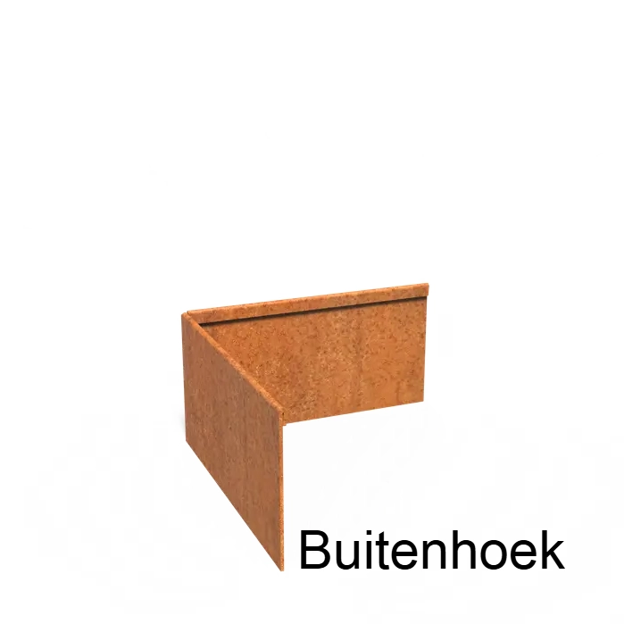 Cortenstaal kantopsluiting geplet 90° hoek 30x30x0,3x15cm