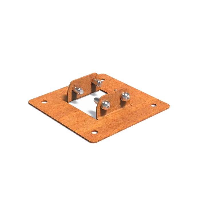 Voetplaat voor het plaatsen van onze cortenstaal pergola's op maaiveld.