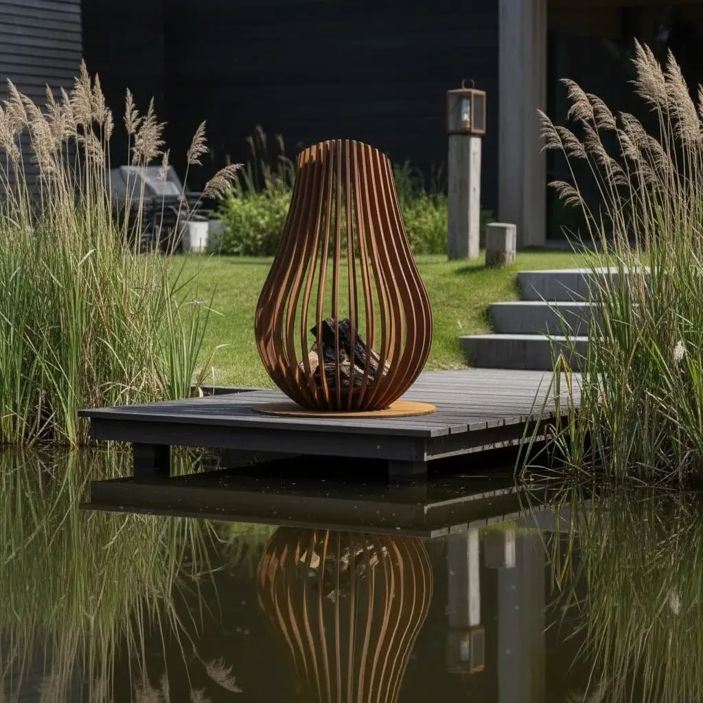 Deze vuurkorf combineert praktische duurzaamheid met een rustige, natuurlijke uitstraling. Een sfeervolle blikvanger die past in zowel moderne als landelijke tuinen.
