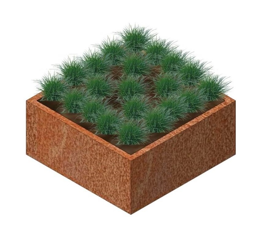 Cortenstaal plantenbak 90x90x40cm (2mm dik) - Zonder bodem - HTDesign